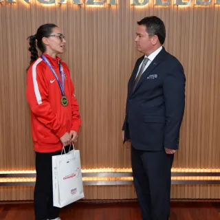 Genç yaşına rağmen Balkan Şampiyonası’nda altın, Avrupa Oyunları’nda ise bronz madalya kazanmış olan Sıla, madalyalarıyla birlikte Başkan Aydın’ı ziyaret etti. Bu anlamlı ziyaret sırasında Türkiye Taekwondo Federasyonu Başkan Danışmanı Cumhur Aktaş, Milli Takım Antrenörü Nevzat Yaşar ve Mavi Kelebekler Spor Kulübü Başkanı Ahmet Sergen Keleşoğlu da Sıla’ya eşlik etti.