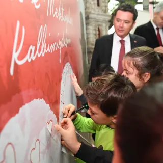 Törenin sonunda, tüm katılımcılar Anı Duvarı’na duygu ve düşüncelerini yazdıkları etiketleri yapıştırdı.