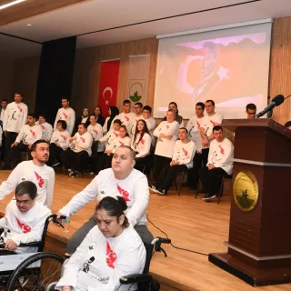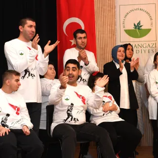 Türkiye Cumhuriyeti’nin 102. kuruluş yıldönümünü kutlamak amacıyla OBAM’da eğitim gören öğrenciler, çeşitli özel gösteriler hazırladı. Osmangazi Gösteri Merkezi’nde düzenlenen etkinlikte sahne alan öğrenciler, koro eşliğinde şarkılar söyleyip gösteriler gerçekleştirerek Cumhuriyet’in 102. yılını büyük bir mutlulukla kutladı. Engelli bireylerin performansları izleyicilerden büyük takdir topladı. Kutlama etkinliğine Osmangazi Belediye Başkanı Erkan Aydın, belediye başkan yardımcıları, meclis üyeleri, öğrenciler ve vatandaşlar katıldı. Etkinliğe katılanlar, engelli bireylerin coşkulu şarkılarına alkışlarla eşlik ederek heyecanlarına ortak oldular.